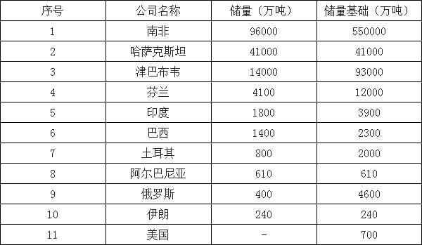 鉻為鋼灰色金屬,鉻礦常被加工成鉻鐵,90%以上用于不銹鋼的生產。世界鉻鐵礦資源總量超過120億噸,據美國地質調查局的數據顯示,鉻鐵礦資源在全球分布極不均衡,主要分布在南非、哈薩克斯坦、津巴布韋、芬蘭、印度、巴西等國,其中,南非、哈薩克斯坦和津巴布韋是世界上鉻鐵礦資源最豐富的3個國家。我國鉻礦資源很大程度以來進口,南非、土耳其和津巴布韋是我國鉻礦的主要進口國,分別占2017年我國鉻礦進口數量的72.34%,8.04%和3.23%。